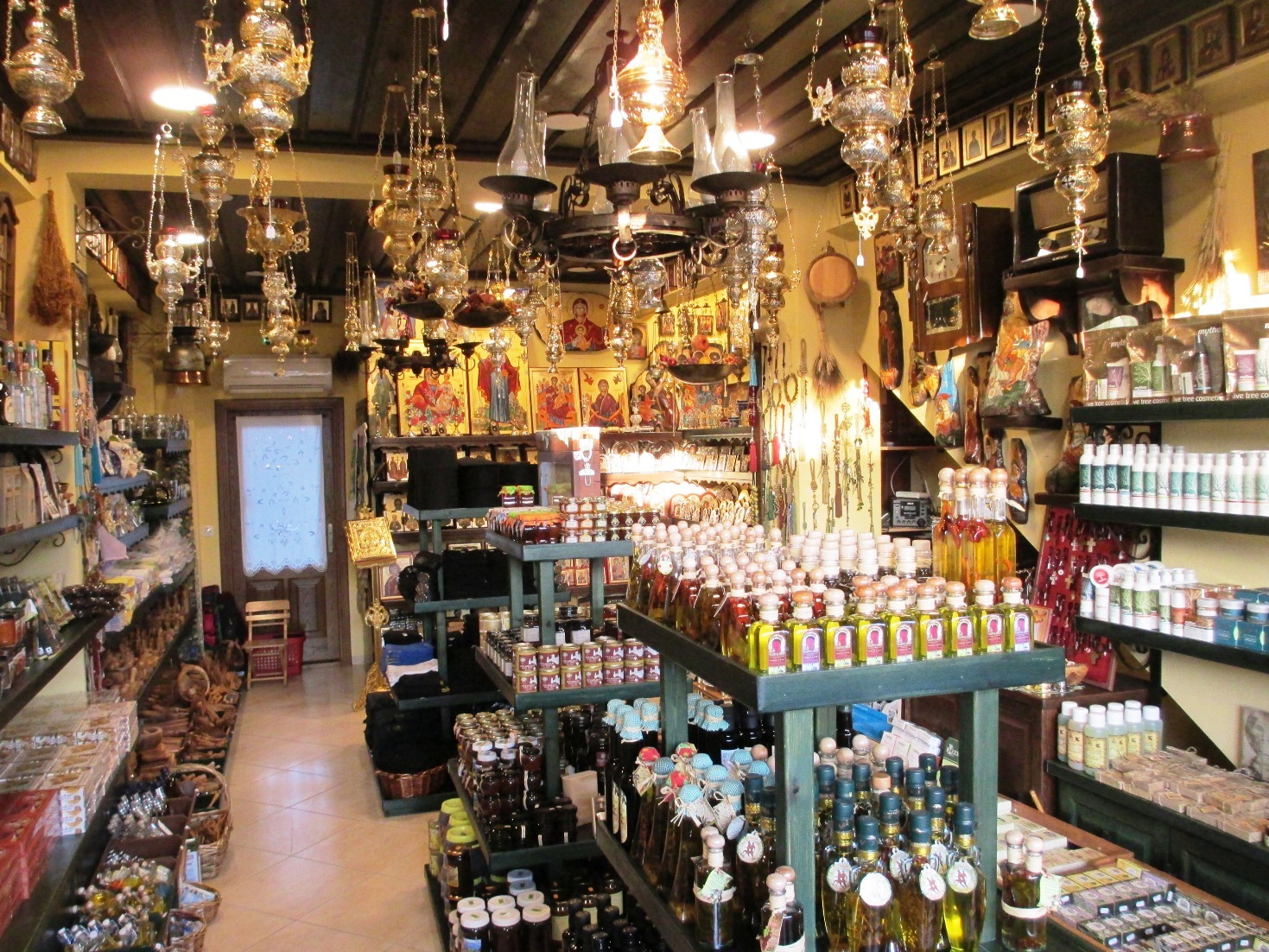 Ειδικά δημοφιλής είναι βέβαια οι εικόνες των Αγίων, Καντήλια για το σπίτι ή για τα νεκροταφεία, Σταυροί ξύλινοι και άλλα Εργόχειρα. Για όσους προτιμάνε μικρά θρησκευτικά σουβενίρ όπως χειροποίητες δερμάτινες ζώνες, Κομποσκοίνια, ανδρικοί αλλά και γυναικείοι σταυροί με κορδόνι και μικρά μπρελόκ, μπορούν να τα προμηθευτούν όπου πουλάνε είδη Αγίου όρους ή άλλα θρησκευτικά είδη της Ελληνικής Ορθόδοξης Εκκλησίας μας.